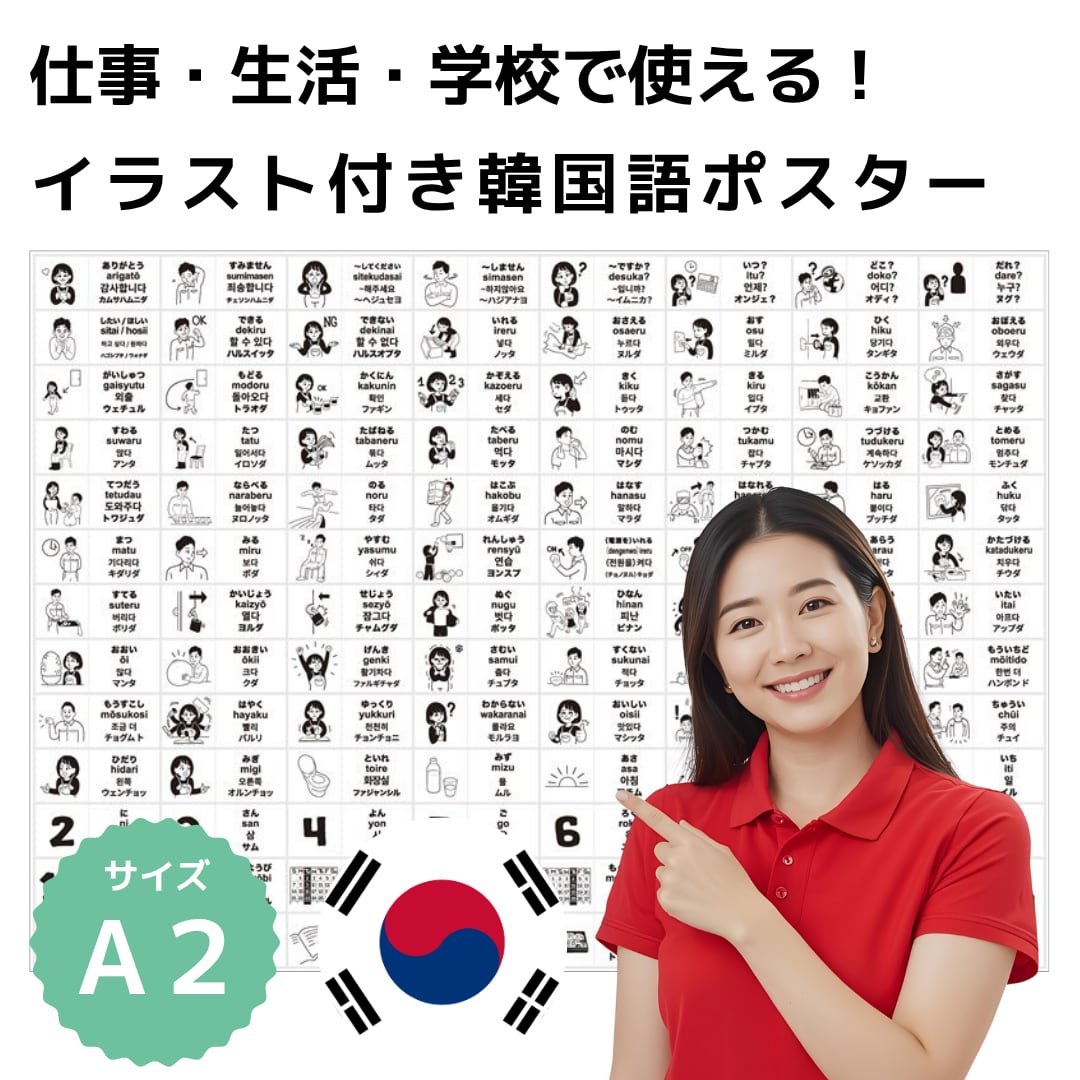 100個のイラスト付き韓国語ポスター(A2)/仕事・生活・学校で使える!