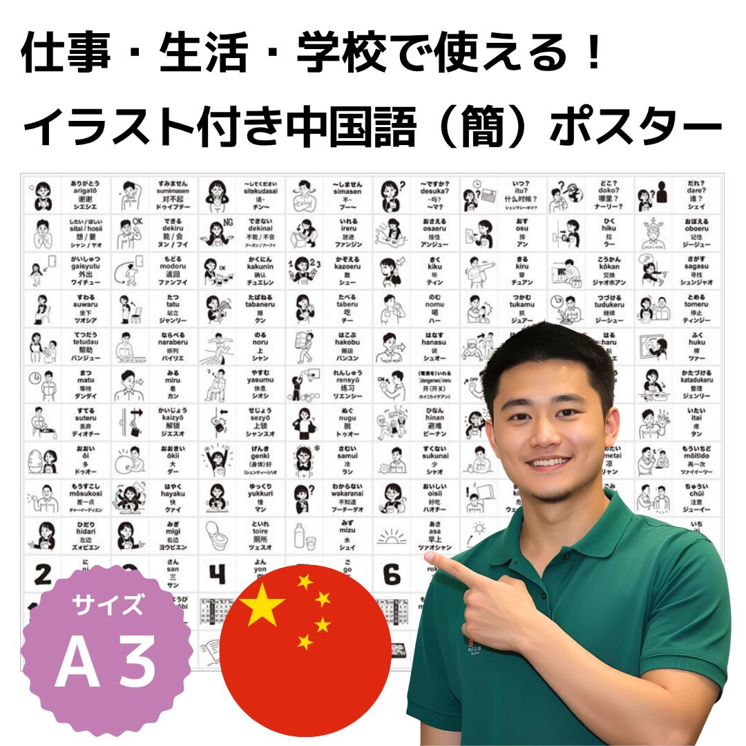 100個のイラスト付き中国語(簡体字)ポスター(A3)/仕事・生活・学校で使える!